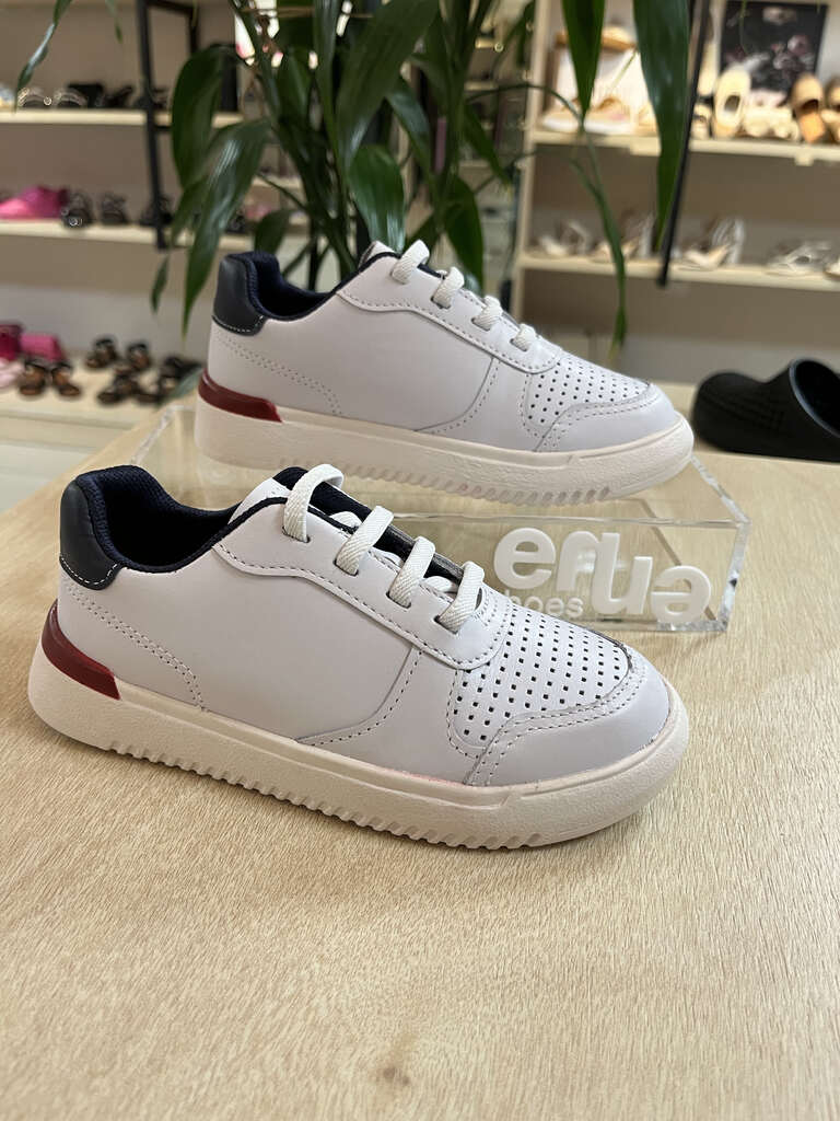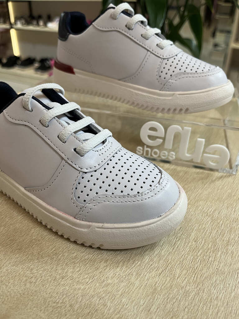 Tênis Infantil Bibi de Couro Branco com Azul New Way